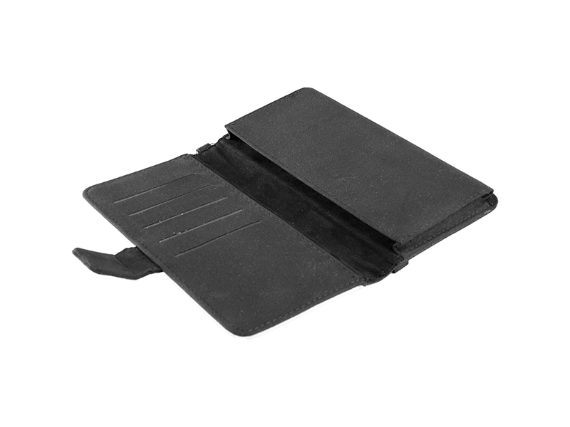 Black wallet with 5 slots for credit card. With strap, easy to carry. White polyester flap for printing.