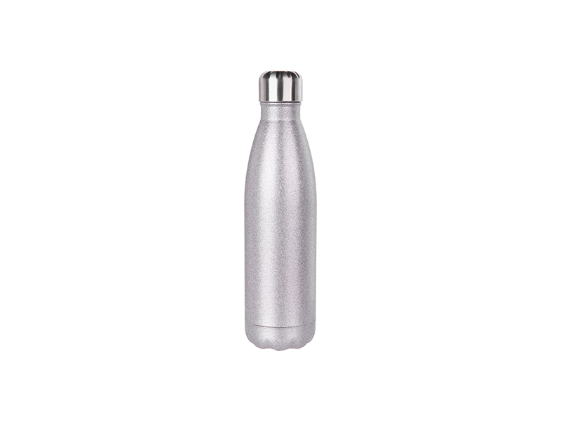 Item Name: Sublimation 17oz/500ml Glitter Stainless Steel Cola Shaped Bottle(Silver)