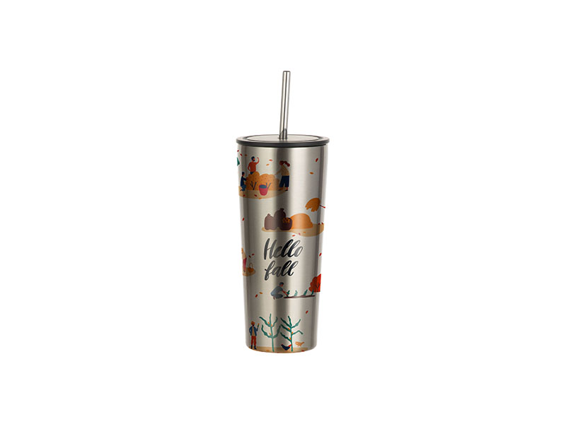 Item Name: Sublimation 22oz/650ml Stainless Steel Tumbler w/ Straw (Silver)