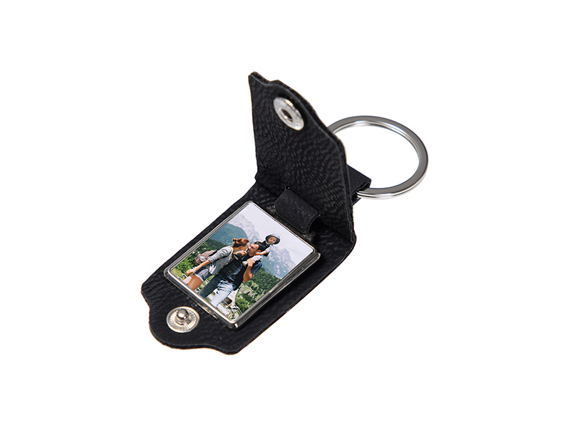 Porta-Chaves de Couro para Gravagem (3.5*7.5cm, Preto)