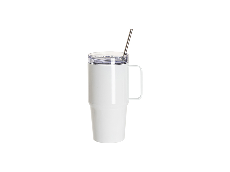Item Name: 20oz/600ml Stainless Steel Handled Travel Tumbler with Lid & Straw (White)